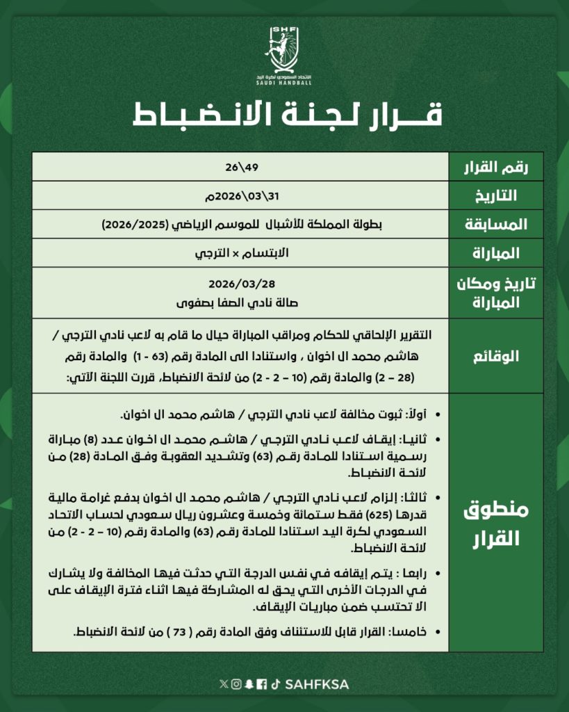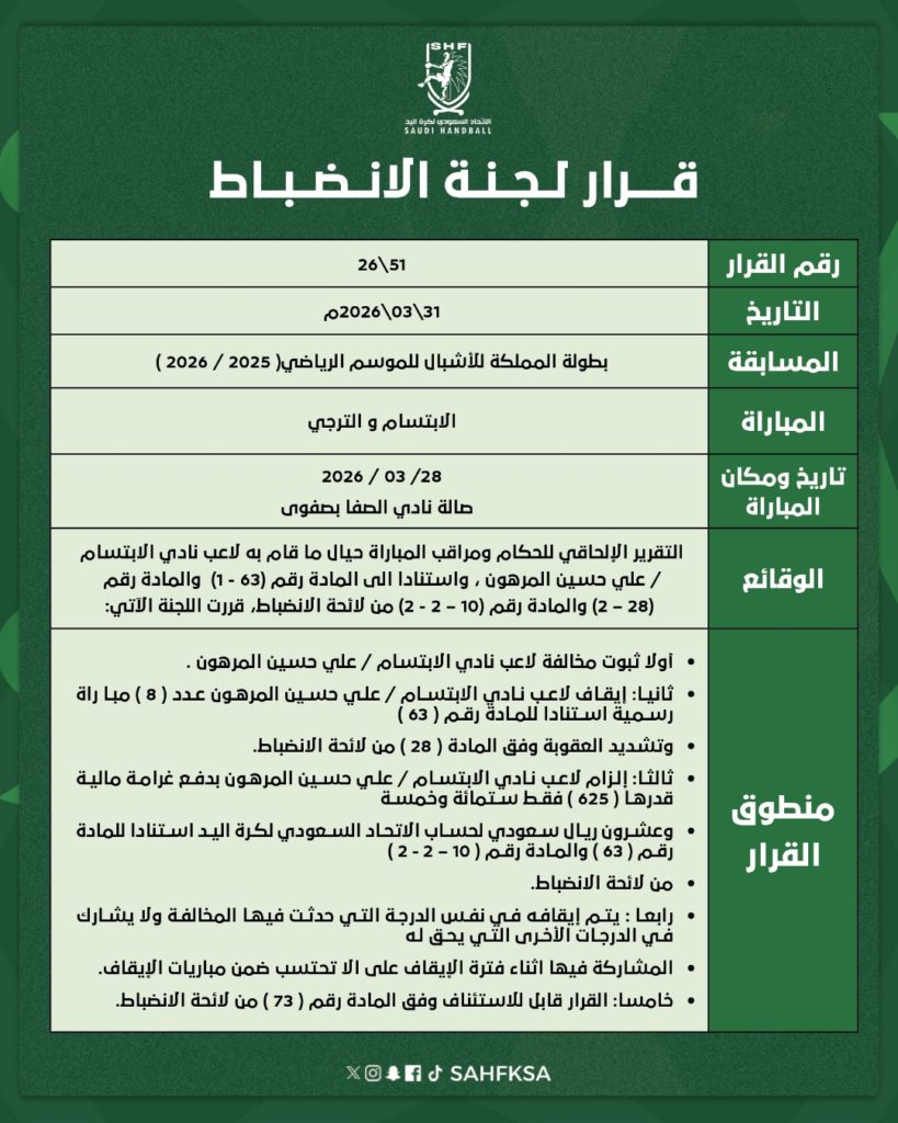 قرارات لجنة الانضباط
