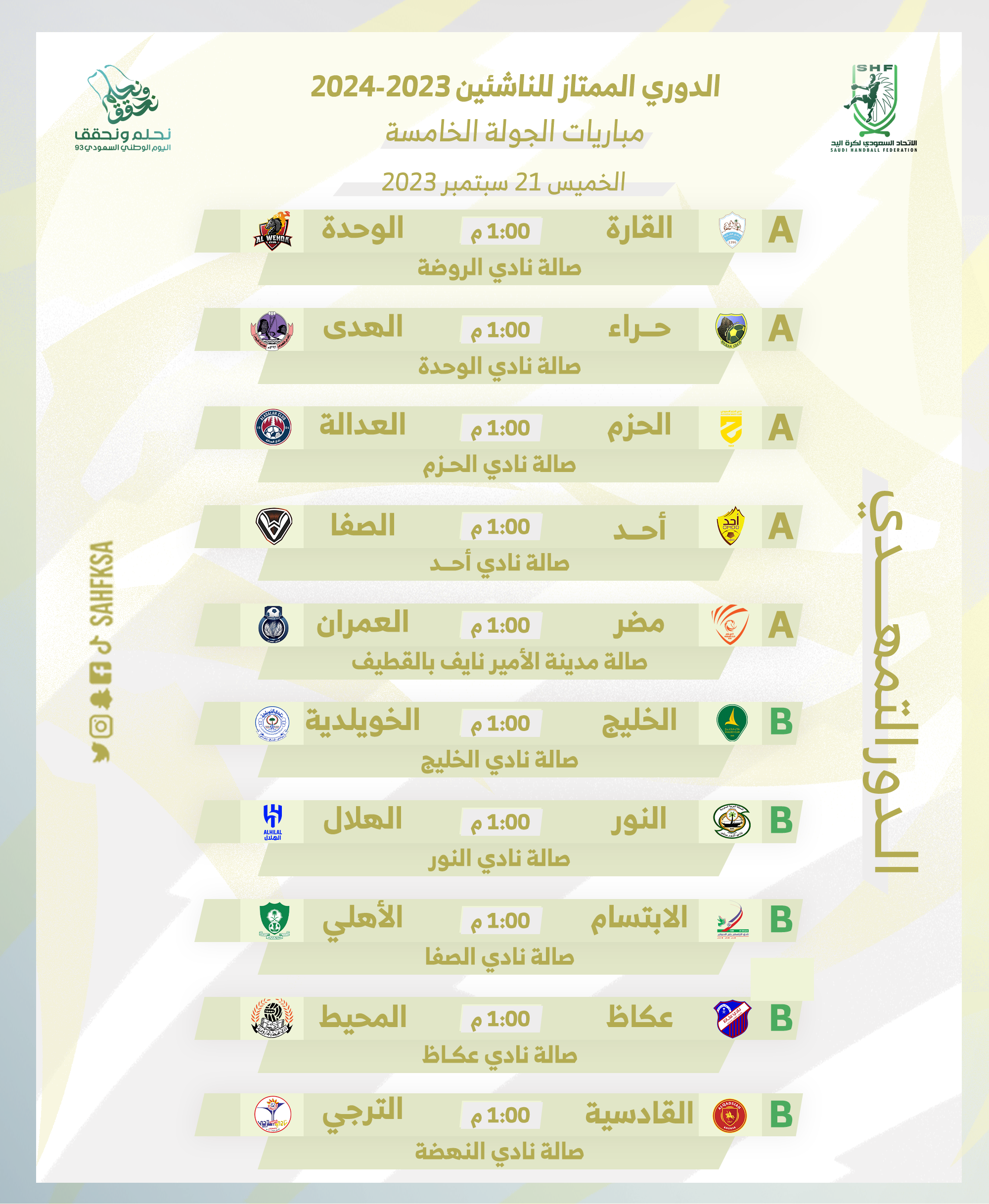 الخليج يستمر في صدارة ممتاز اليد والهدى يواصل حصد العلامة الكاملة ومنافسات تتوقف 55 يوم مع ختام الجولة السادسة