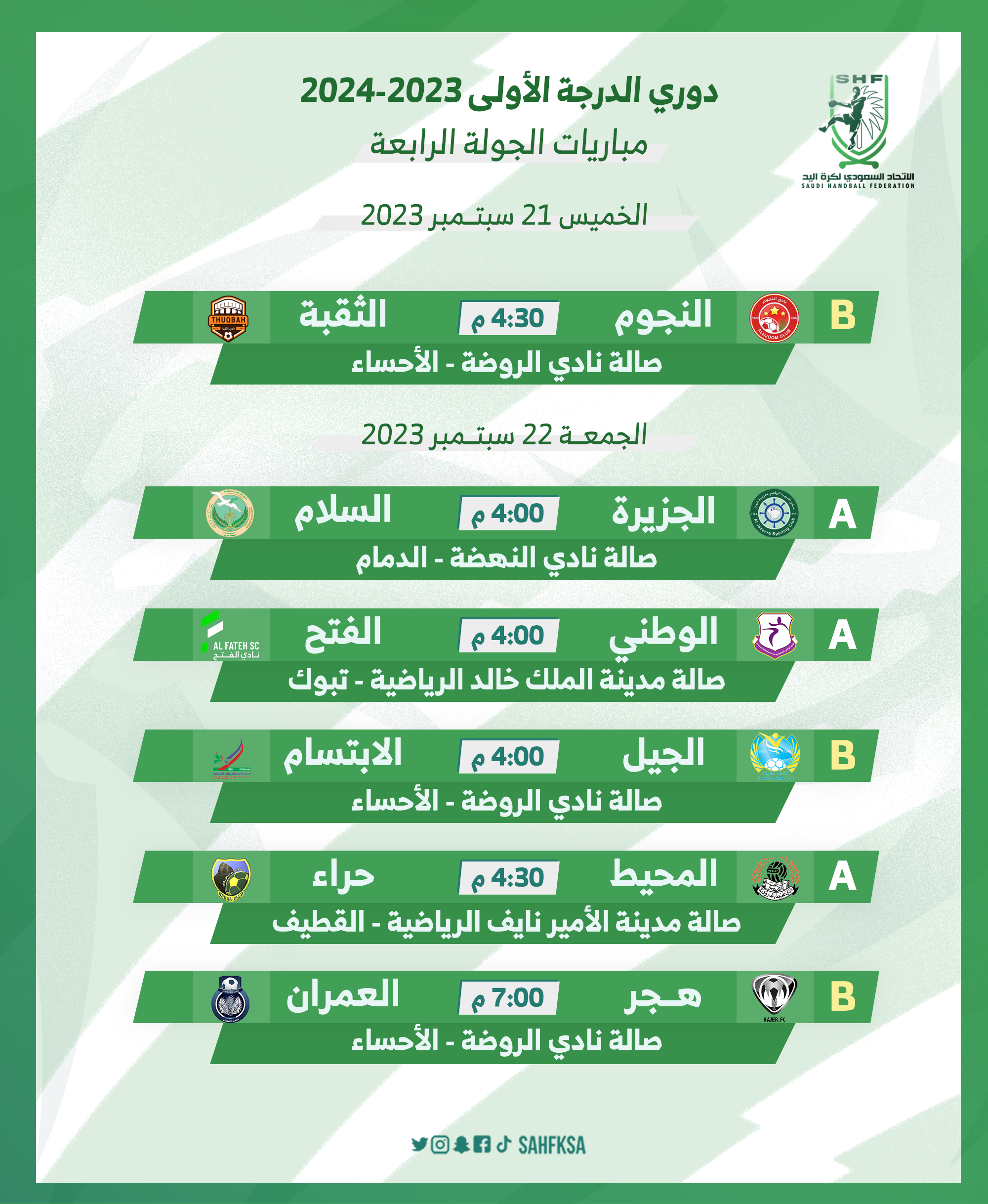 النجوم يستضيف الثقبة في انطلاق رابع جولات أولى اليد
