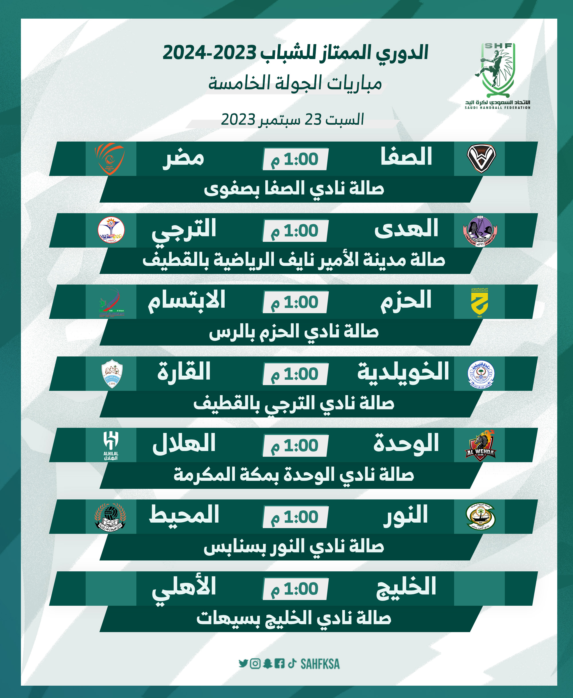 7 مواجهات في خامس جولات ممتاز شباب اليد