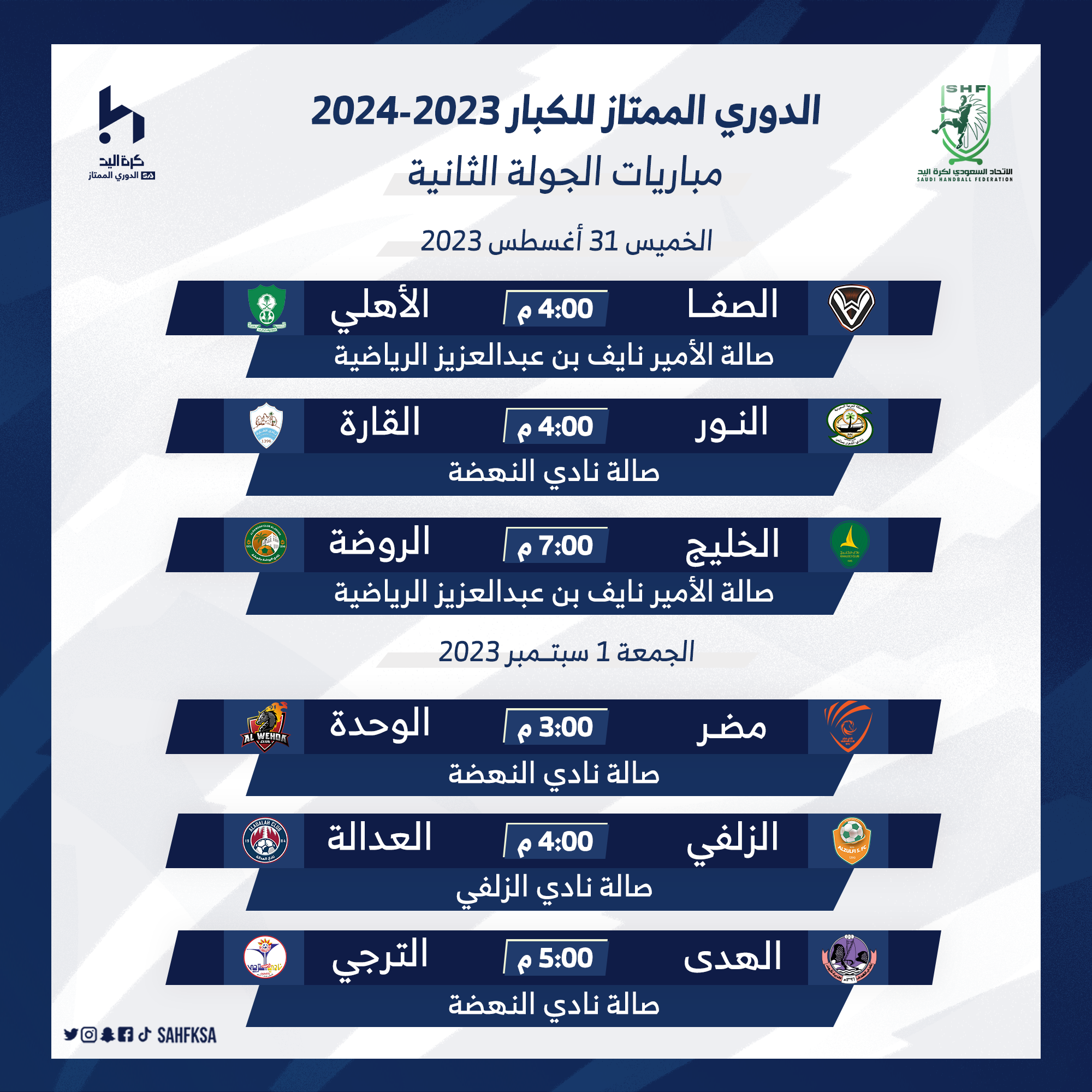 فوز الصفا والخليج وتعادل النور مع القارة في انطلاق مباريات الجولة الثانية من ممتاز اليد