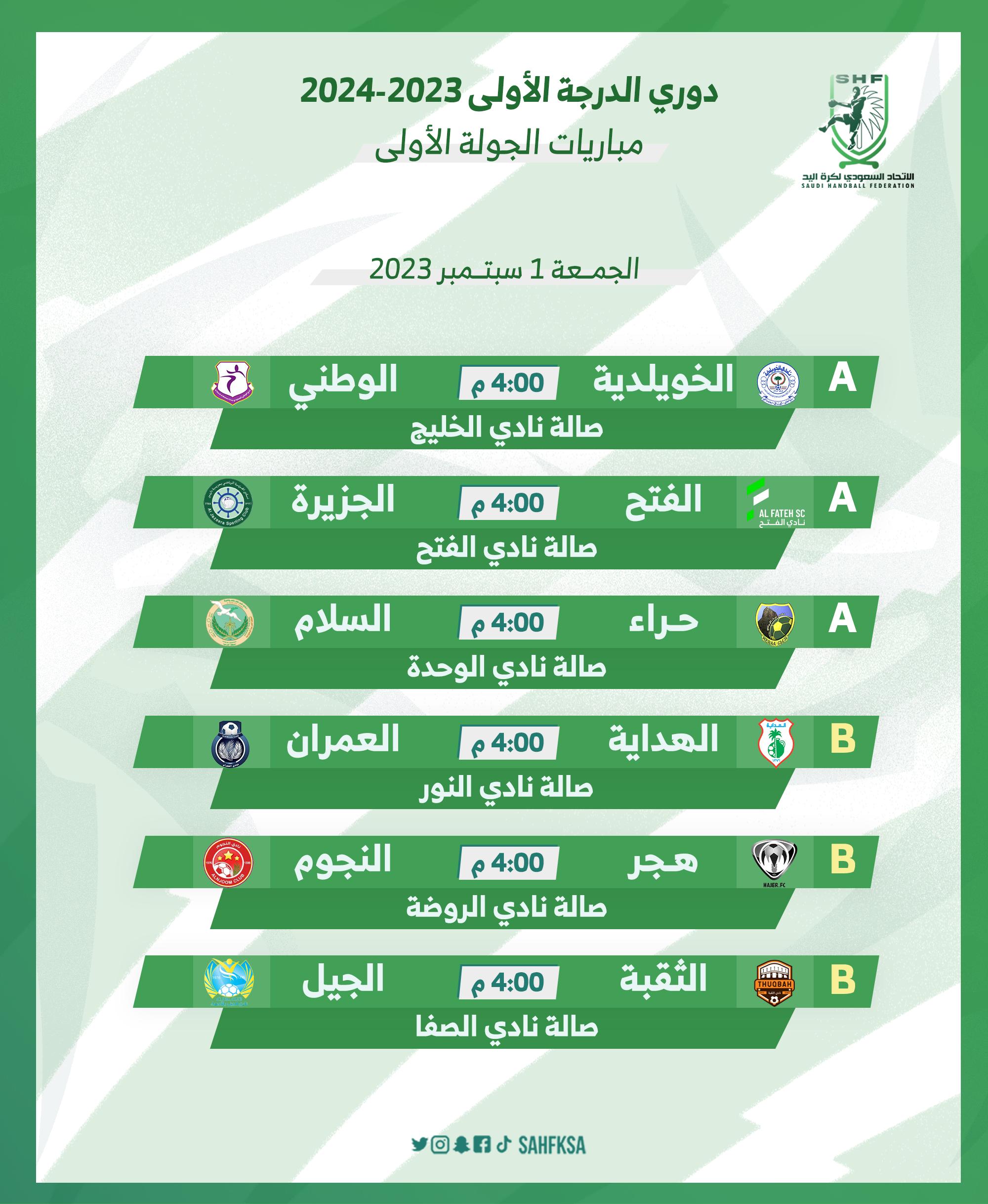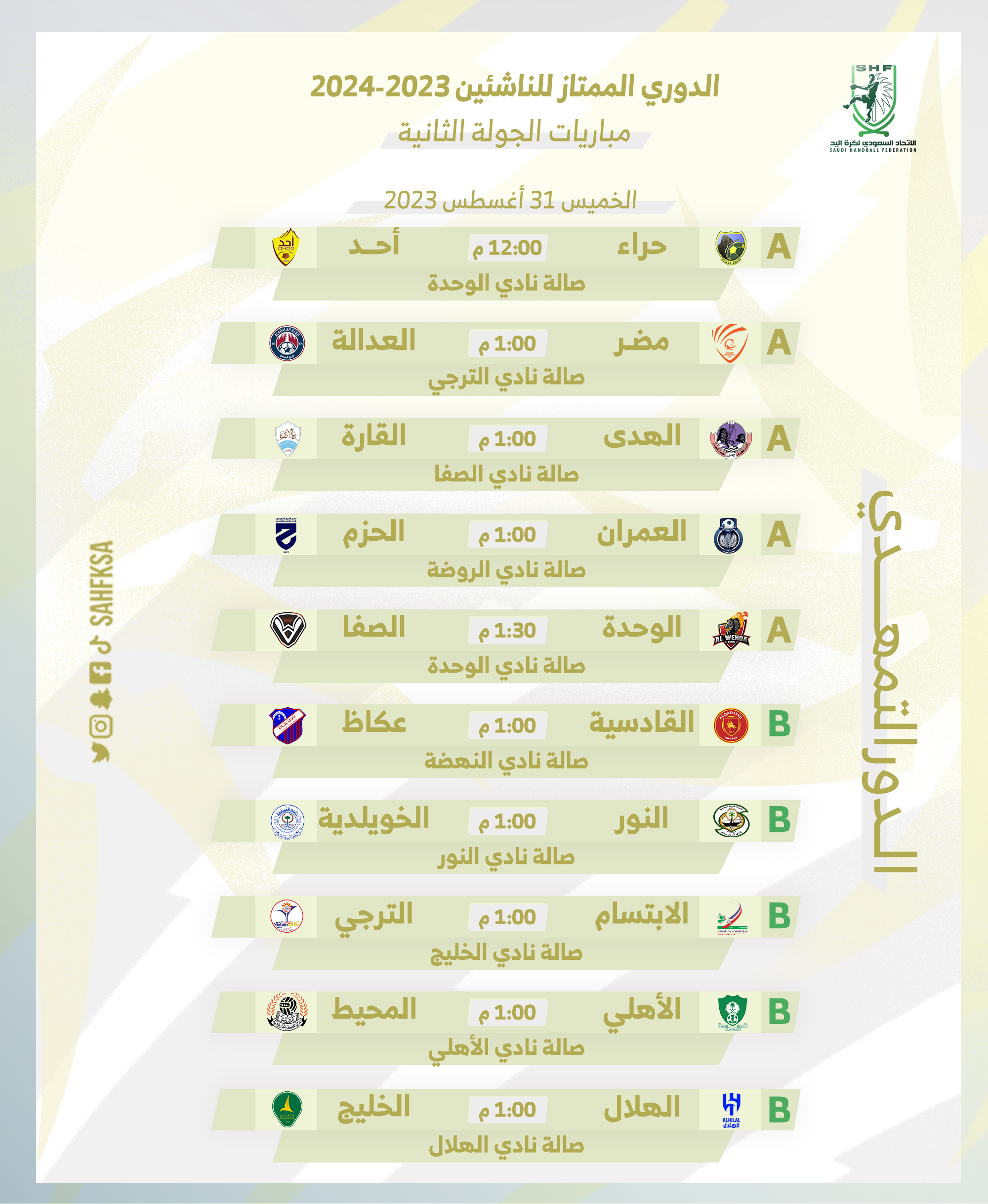 ختام الجولة الثانية من ممتاز ناشئين اليد بتحقيق 8 فرق العلامة الكاملة
